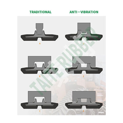 Преимущество: у нас есть наш запатентованный дизайн AVT, разработанный независимым инженером-акустиком в 2007 году.и после испытаний, проведенных на 3-5-тонных экскаваторах с использованием как мягкой, так и твердой поверхности, и средний результат был удивительным 75% меньше вибрации, чем обычные рельсы без конструкции AVT..